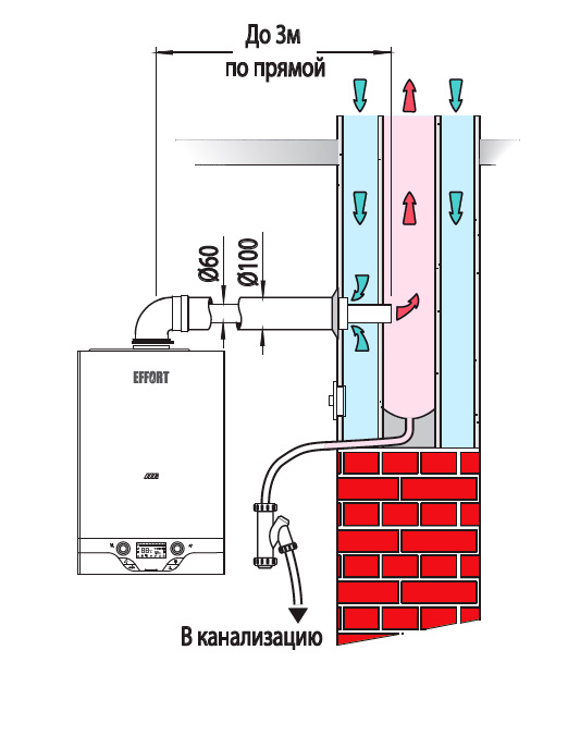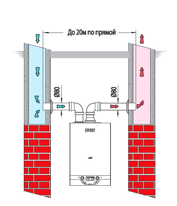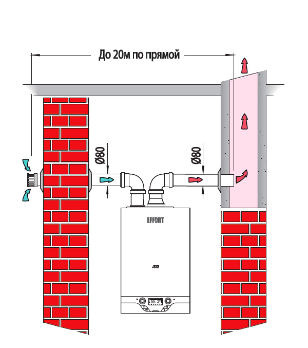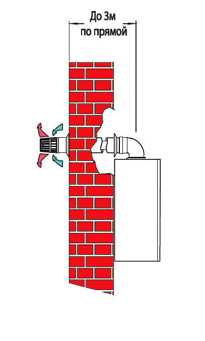 Примечание: Указанная на схемах максимально допустимая протяженность дымоходов/воздуховодов «по прямой» уменьшается при установке дополнительных изме-